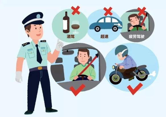 戴头盔、系安全带;不超速、不酒驾、不分心驾驶、不疲劳驾驶;儿童使用安全座椅,减少道路交通伤害。